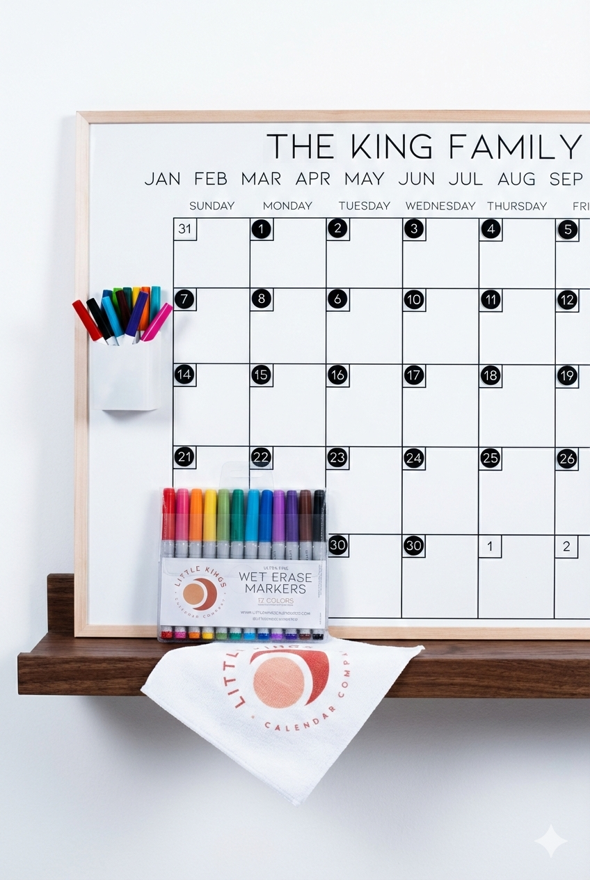 At Little Kings Calendar Company, we believe that a happy life starts with a little bit of order and structure. We’re a family-run business in Idaho, creating custom whiteboard calendars and visual magnet systems that help bring rhythm and simplicity to busy days—whether you’re a parent, a student, a business owner, or anyone trying to keep life running smoothly.